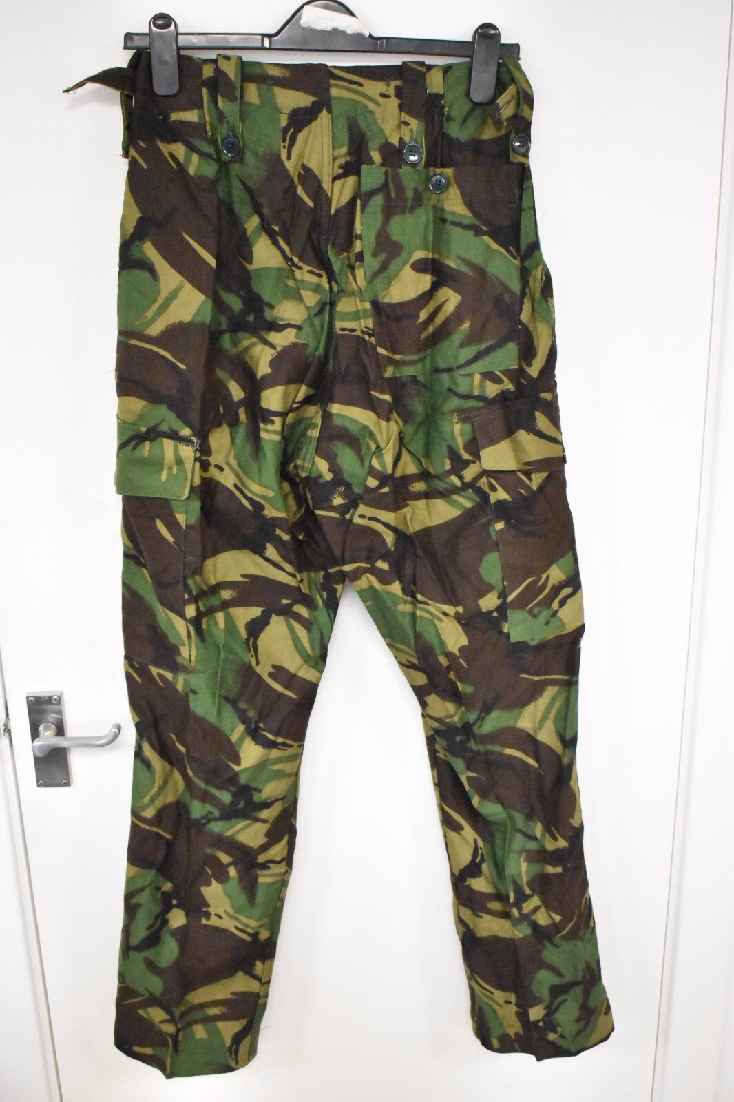 Original British Army 68 Pattern Combat Trousers, featuring the iconic DPM camouflage used during the Cold War and Falklands era. A rare vintage piece perfect for collectors, reenactors, or military surplus enthusiasts.