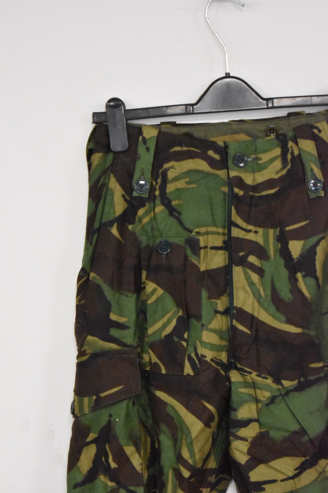 Original British Army 68 Pattern Combat Trousers, featuring the iconic DPM camouflage used during the Cold War and Falklands era. A rare vintage piece perfect for collectors, reenactors, or military surplus enthusiasts.