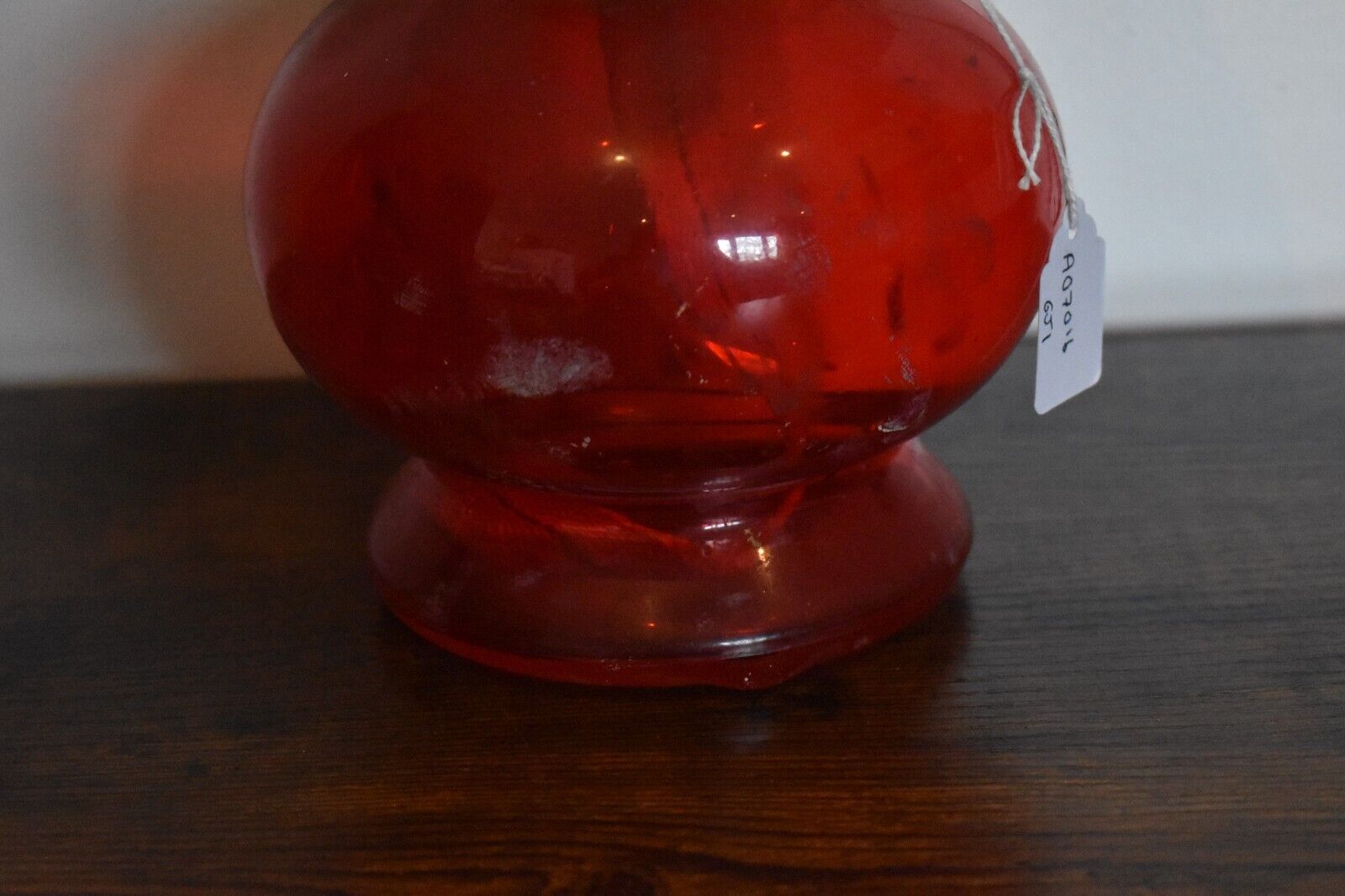 Vintage P&A Risdon Oil Lamp with Eagle Burner USA Ruby Red Glass and White Shade