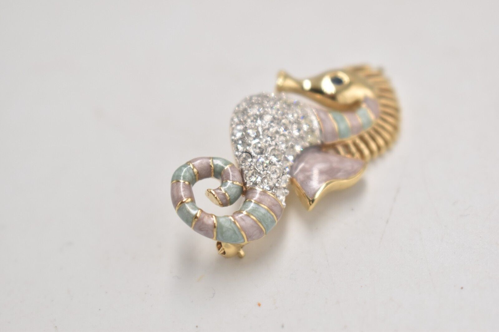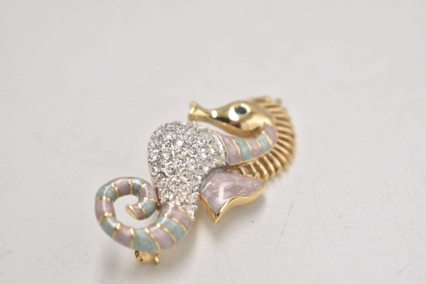 Vintage Seahorse Brooch – Rhinestone & Enamel – Costume Jewellery