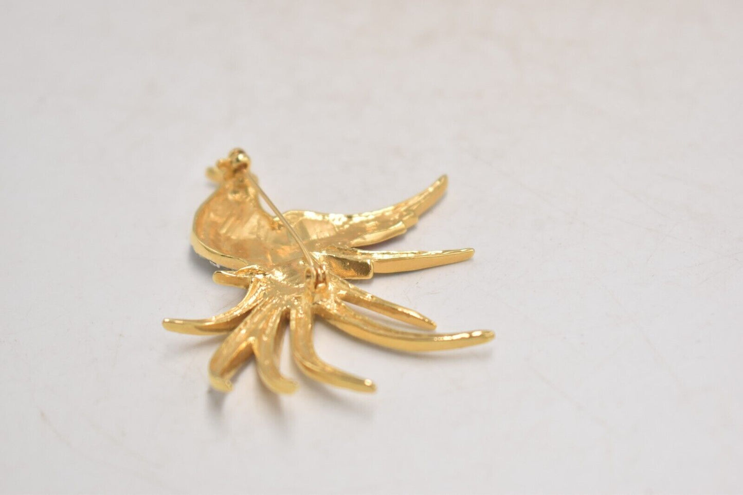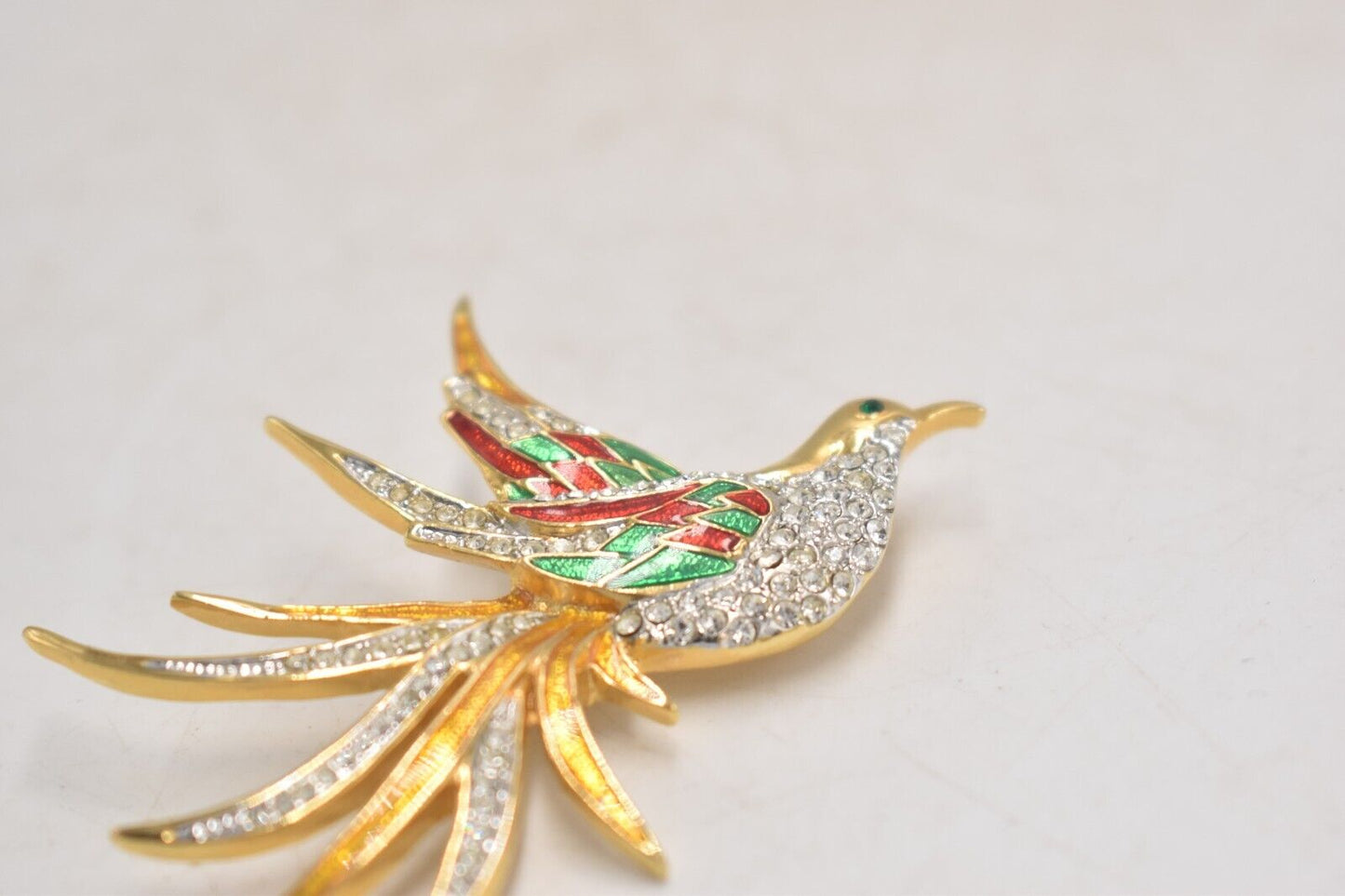 Vintage Seta Bird of Paradise Brooch – Gold Tone, Rhinestone & Enamel
