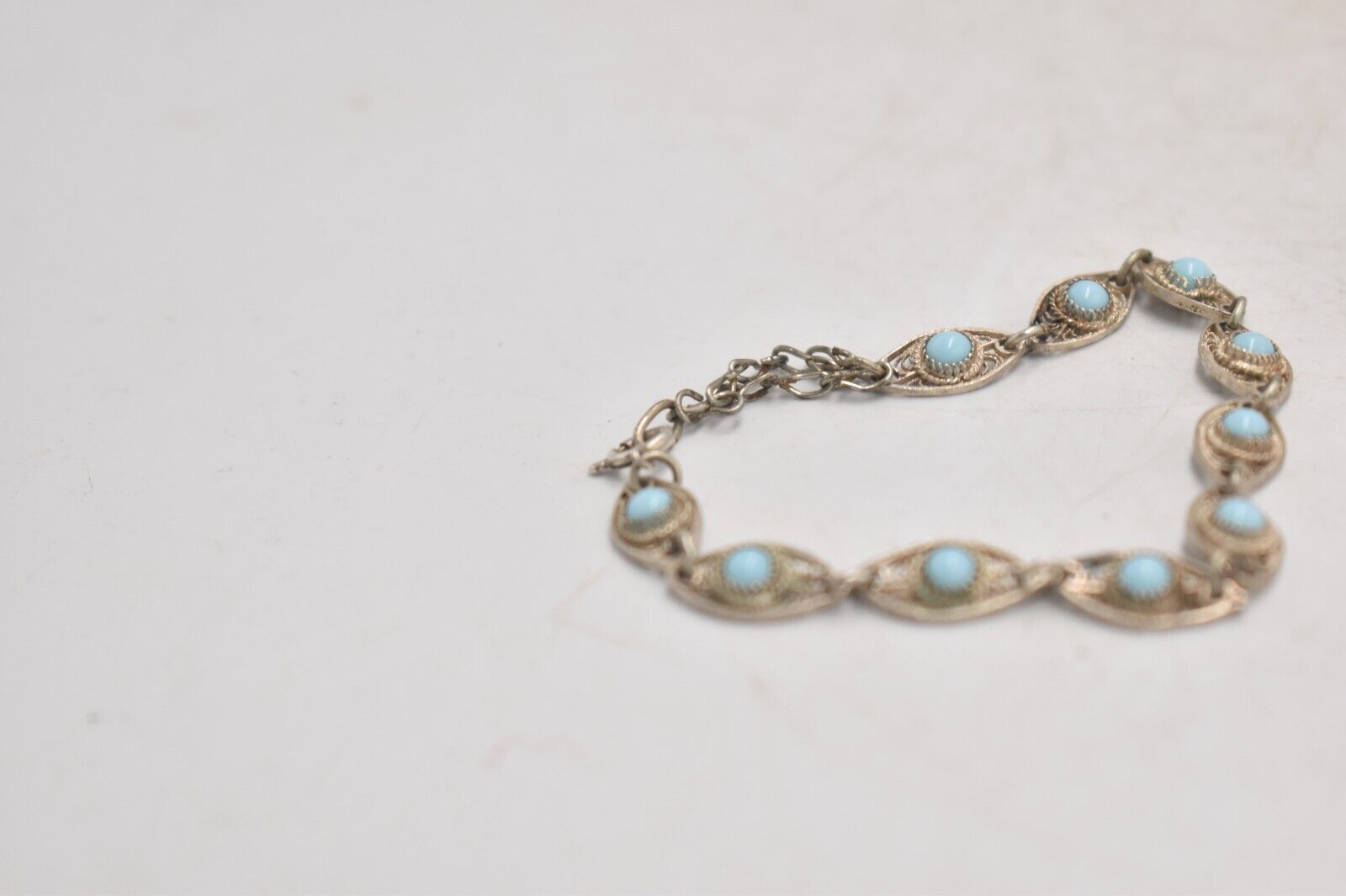 Vintage Silver Metal & Turquoise Boohoo Style Bracelet – 18cm