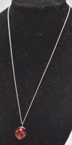 Vintage Sterling Silver 925 Necklace with Red Faceted Glass Crystal Pendant 45cm